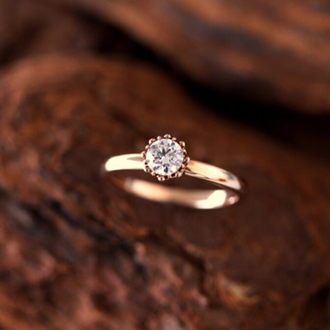 静かな水面に水滴が落ちた時に現れる自然の芸術「アクアクラウン」をモチーフとした婚約指輪。8本の爪とアクアクラウンが繊細にダイヤモンドを支えます。自然が作り出す造形を取り入れた繊細なリングは、特別な瞬間にふさわしい婚約指輪です。