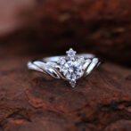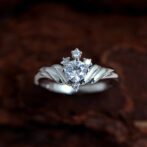 幸せを運ぶ青い小鳥をモチーフにデザインされた「アウジェッロ」。指輪側面のくびれなど細かいところまで丁寧にデザインされた、特別な瞬間にふさわしい婚約指輪です。